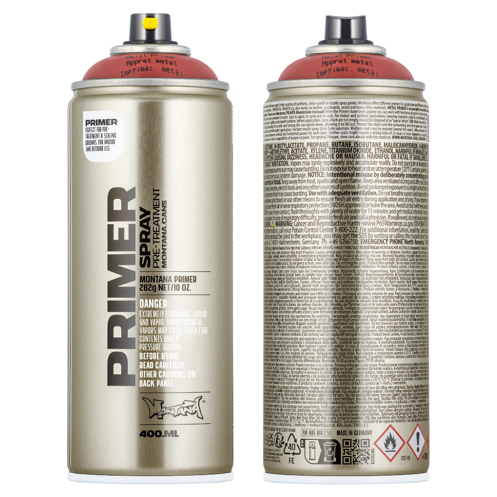 METAL PRIMER został opracowany do optymalnej obróbki wstępnej powierzchni metalowych (żelaznych lub mosiężnych) i mineralnych. upewnienie się, że Twoja powierzchnia jest czysta, suche i wolne od kurzu i olejów przed nałożeniem zapewni, że twój Montana METAL PRIMER stanowi doskonałą bazę dla dalszych powłok. Dalsze powlekanie jest możliwe dzięki gamom kolorów Montana TECH i Montana Cans. Gładka, równomierna aplikacja nie wymaga wysiłku dzięki Montana FLAT JET CAP Medium, który jest standardowo dołączany do puszki. Aby uzyskać więcej nasadek do aplikacji, wypróbuj FLAT JET WIDE, FAT CAP GOLD/BLACK lub którykolwiek z nasadek Montana LEVEL 1-3.