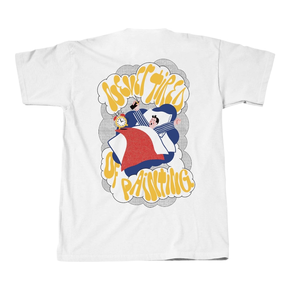 Koszulka „Never Tired of Painting” to szczery hołd dla wszystkich rannych wstawaczy i nocnych marków, którzy bez względu na godzinę są gotowi wyruszyć z puszkami w ręku. Kiedy miasto jeszcze śpi, oni już (albo wciąż) działają – zostawiając ślad tam, gdzie inni widzą tylko mury.
